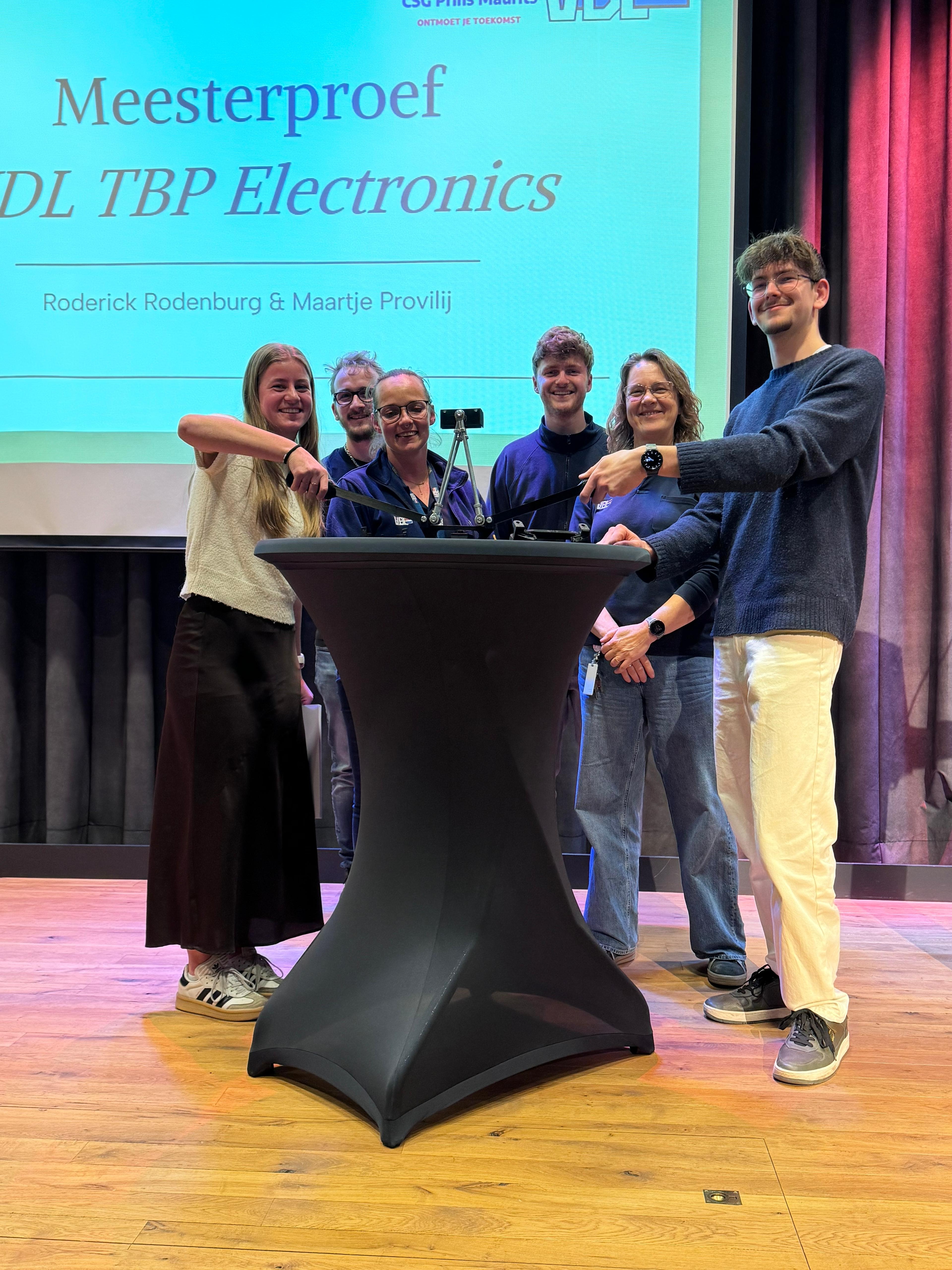 Zes jaar later werpt deze aanpak zijn vruchten af. De vwo 6-leerlingen voerden hun eindproject uit voor VDL-TBP Electronics. Zij ontwikkelden een constructie waarmee een handeling die normaal een kracht van circa 120 kilo vereist, nu met slechts 4 kilo per hand uitgevoerd kan worden. Achter deze ogenschijnlijk eenvoudige oplossing schuilt uitgebreid vooronderzoek, rekenwerk en testen met simulaties. Ook onderzochten de leerlingen de impact van hun ontwerp op de werkomgeving en stelden zij een gebruiksprotocol op. De constructie zal binnenkort daadwerkelijk in gebruik worden genomen. De opdrachtgeven sprak zijn waardering uit voor het hoge niveau en de professionele samenwerking.