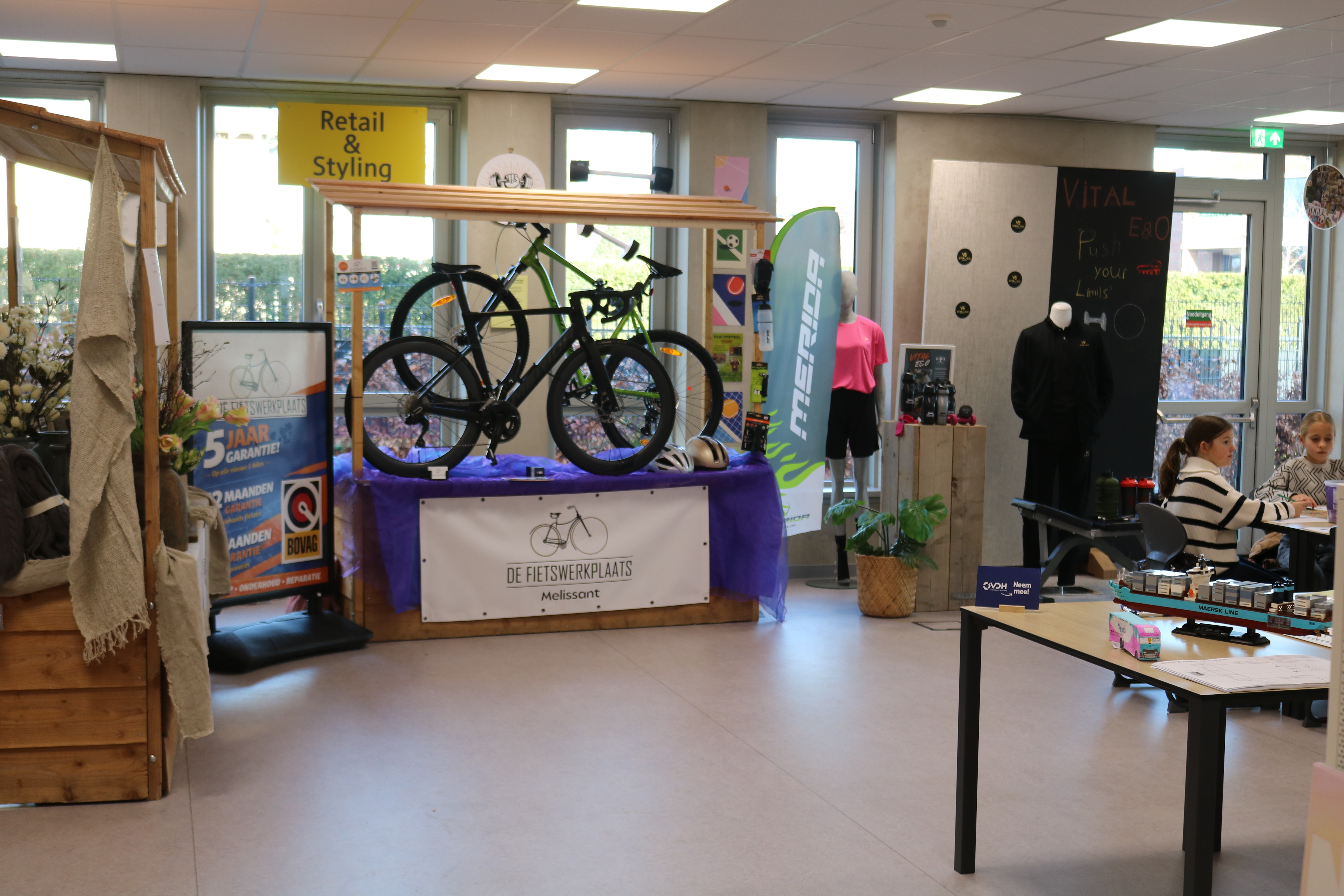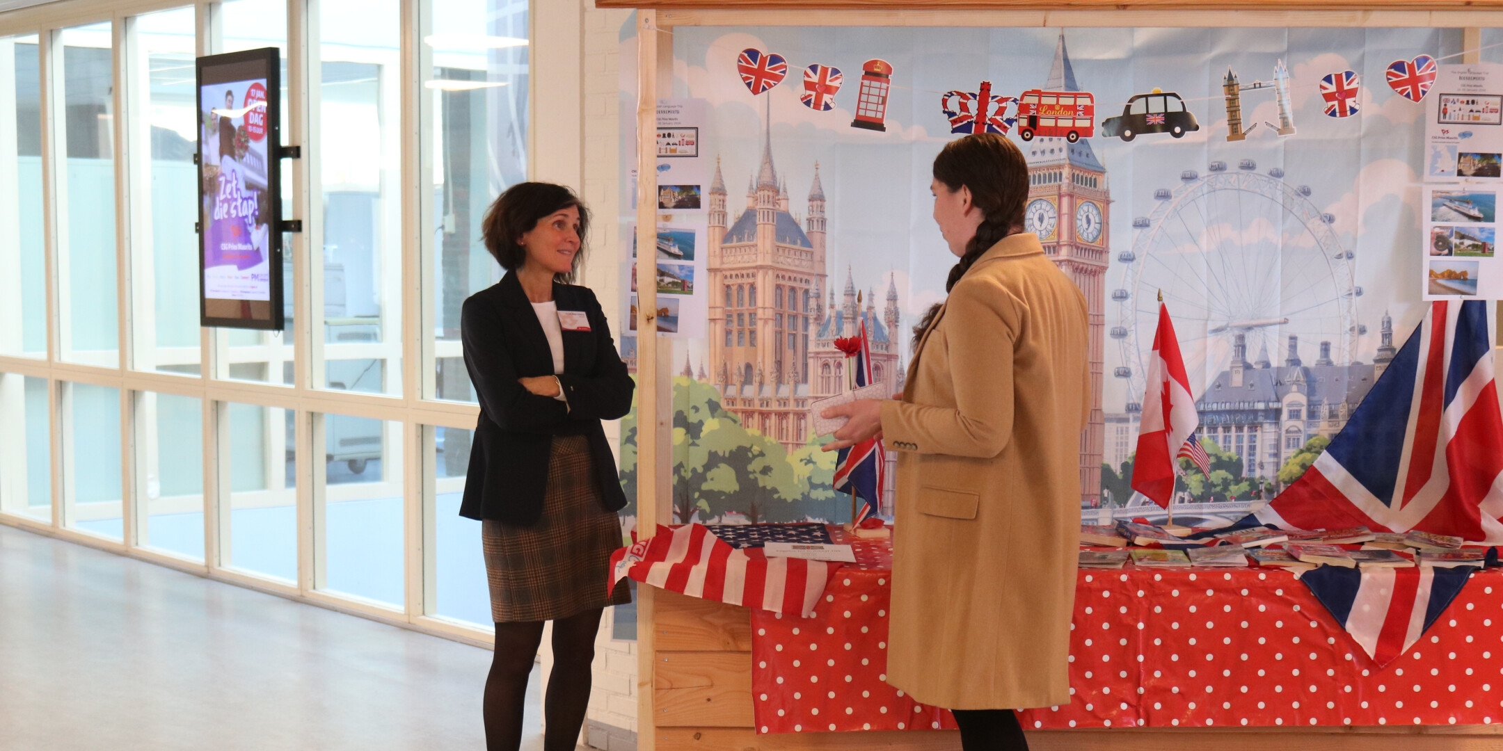 Ook bij Nederlands was creativiteit volop aanwezig: leerlingen hadden schilderijen gemaakt waarin zij hun gevoel verbeeldden met beeldspraak. Bezoekers werden uitgenodigd hetzelfde te doen, wat mooie reacties opleverde zoals: ‘Op de PM voel ik me als een puzzelstukje; ik zoek naar het juiste plekje’ en ‘Op de PM voel ik me alsof ik een nieuw hoofdstuk in mijn boek lees.’ Daarnaast verkocht Lotte van Oostenbrugge uit V3c haar pas verschenen boek Schijn bedriegt met veel succes.