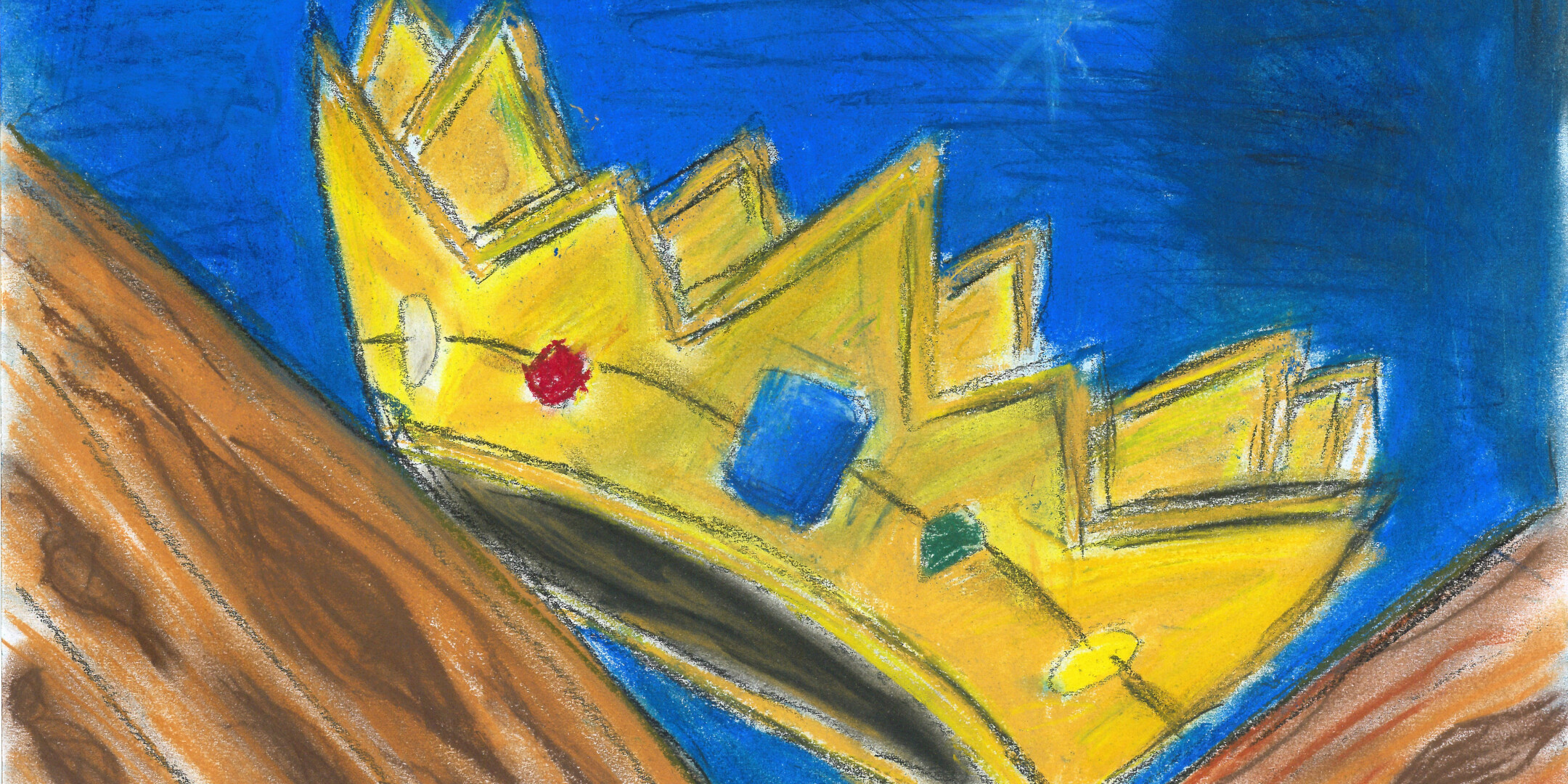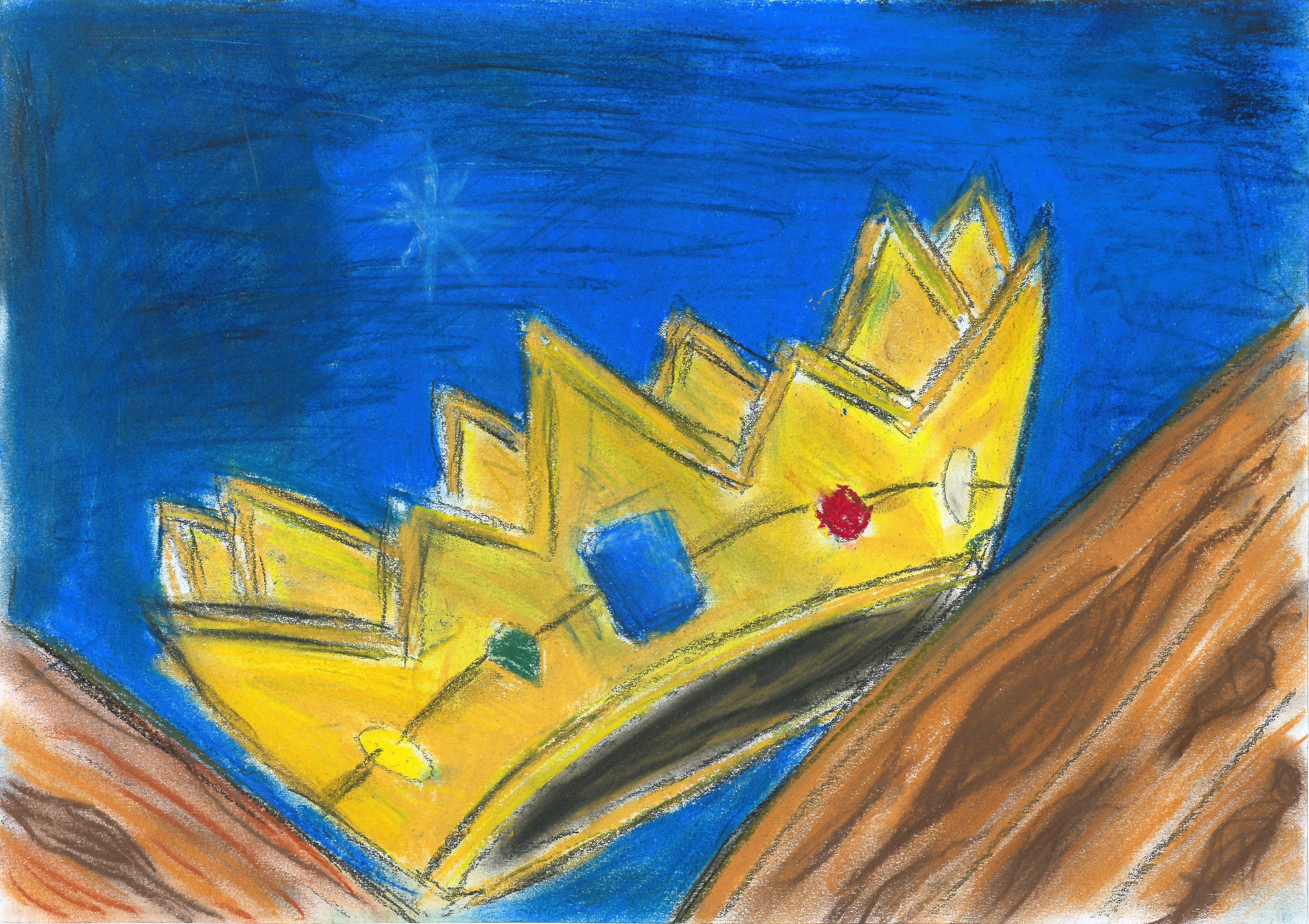 Ik heb een kroon getekend, omdat Jezus Koning is. De kroon ligt in de kribbe.