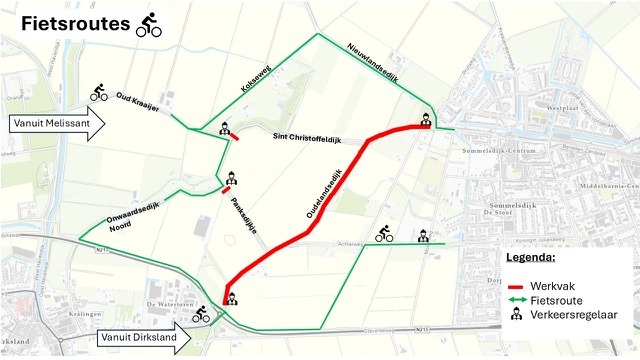 π Alleen open voor fietsers en bestemmingsverkeer.Vanuit Melissant β Dirksland: