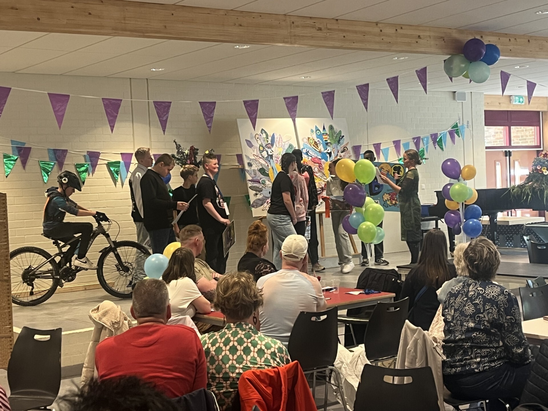 Tijdens de feestelijke bijeenkomst lieten leerlingen zien waar zij zelf trots op zijn. Dat kon van alles zijn: hun werk of stage, een sport, een hobby of een bijzondere vaardigheid. Op de catwalk verschenen kleurrijke outfits, foto’s en sportdemonstraties. Zelfs met een mountainbike en fatbike wisten leerlingen het publiek te verrassen.