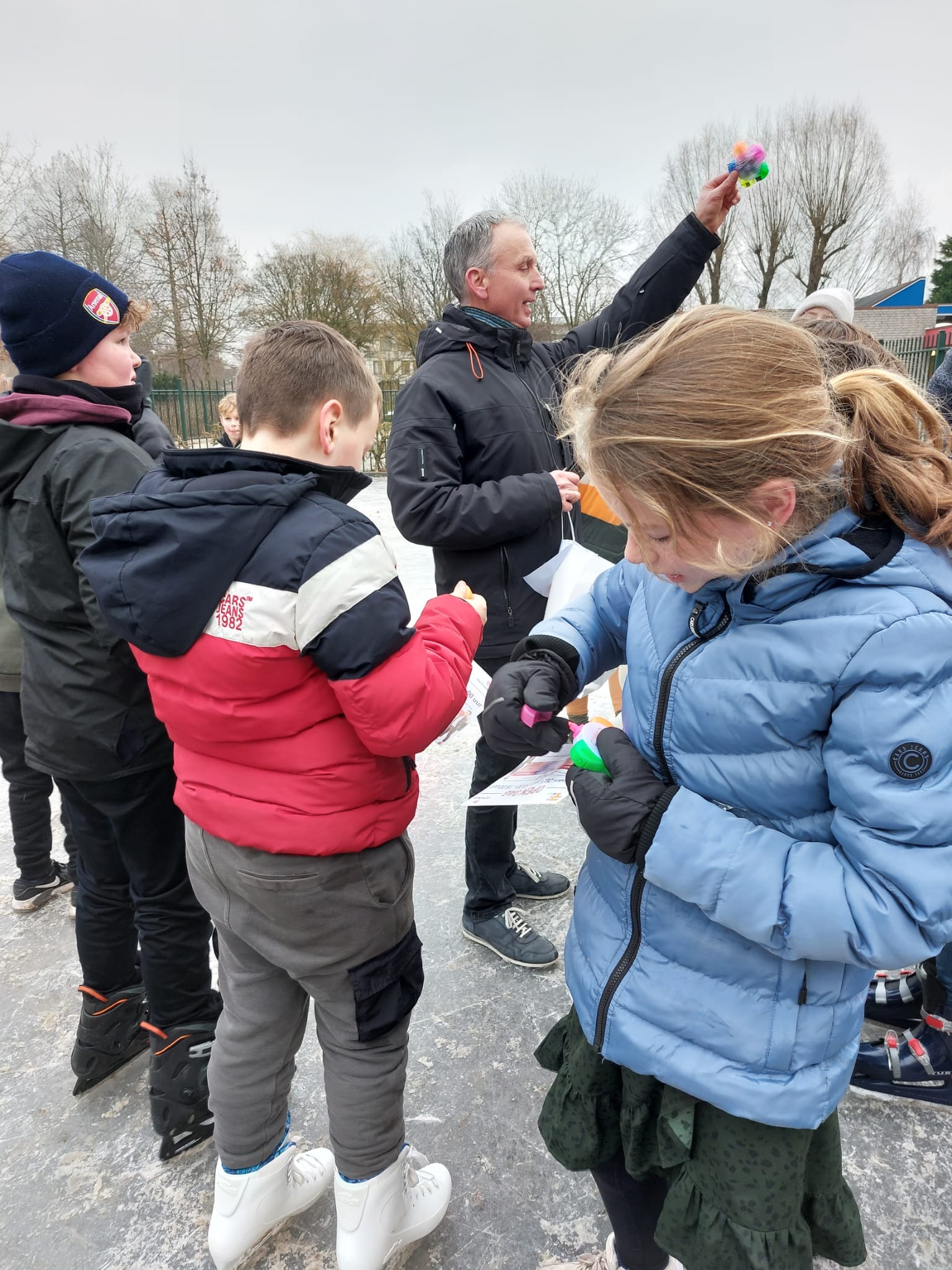 Leerlingen van de brugklas hebben deze week flyers en markeerstiften uitgedeeld op hun 'oude' basisschool. De flyer is een uitnodiging voor de open dag.