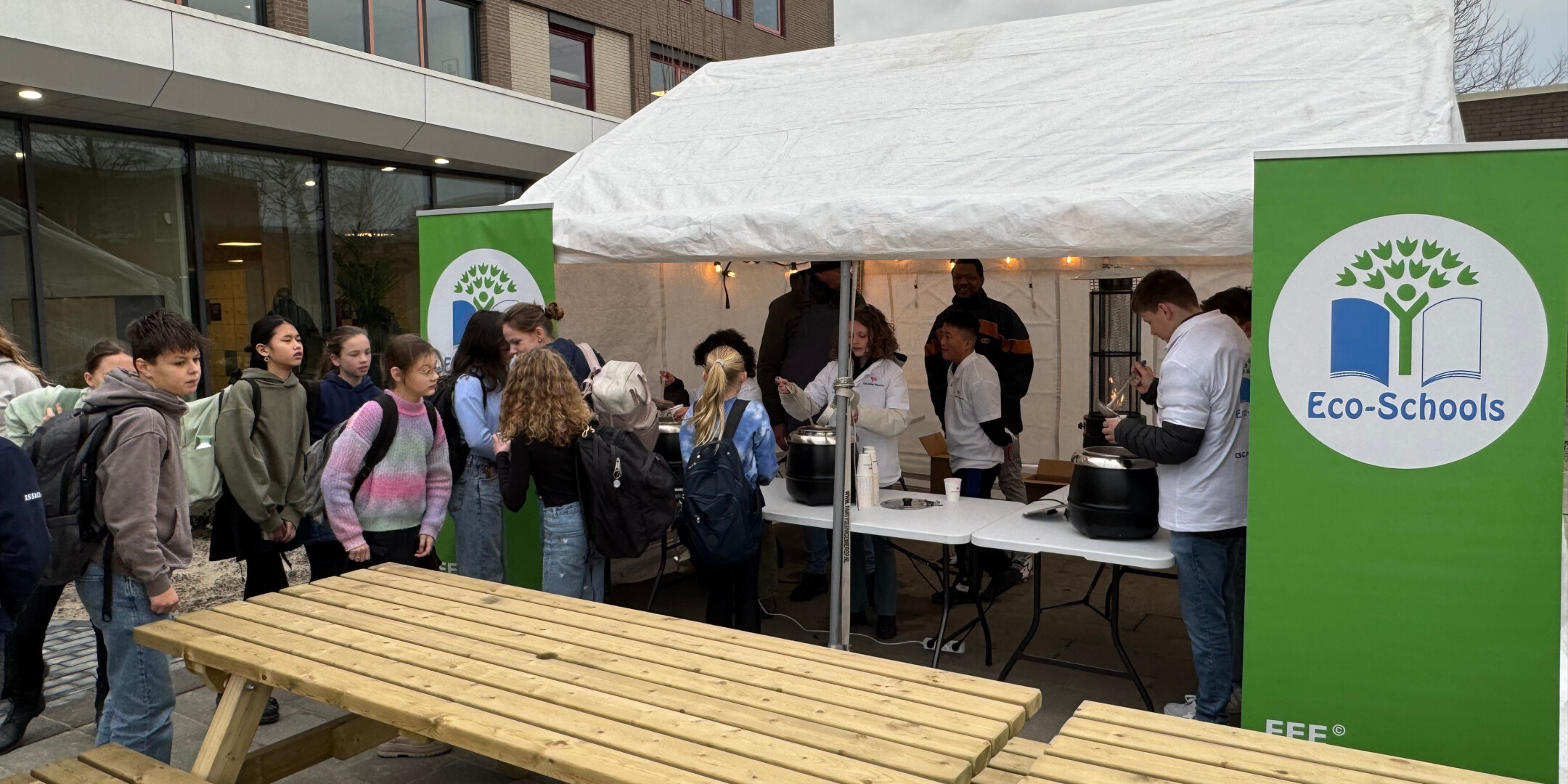 Om de kou wat aangenamer te maken, werd er tijdens de pauze door het Eco-team van leerlingen warme chocolademelk uitgedeeld. Warmetruiendag is een landelijke actie die mensen stimuleert om bewuster met energie om te gaan en zo een bijdrage te leveren aan een beter klimaat.